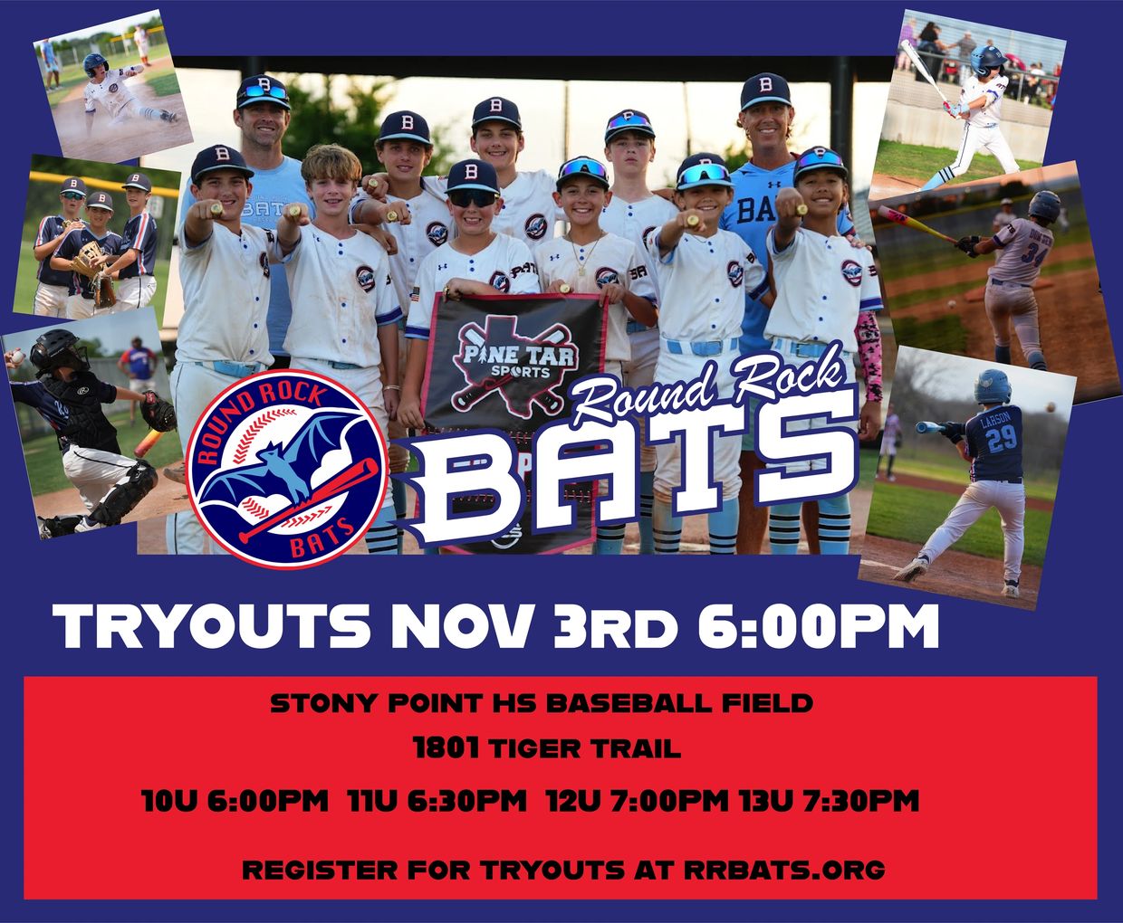 The Round Rock Bats organization is looking for players for the fall season. If you would like to tryout for the team, please register at the link provided.